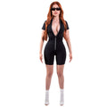Sculpting Romper Short Sleeve w/ Reflective Zipper - Black